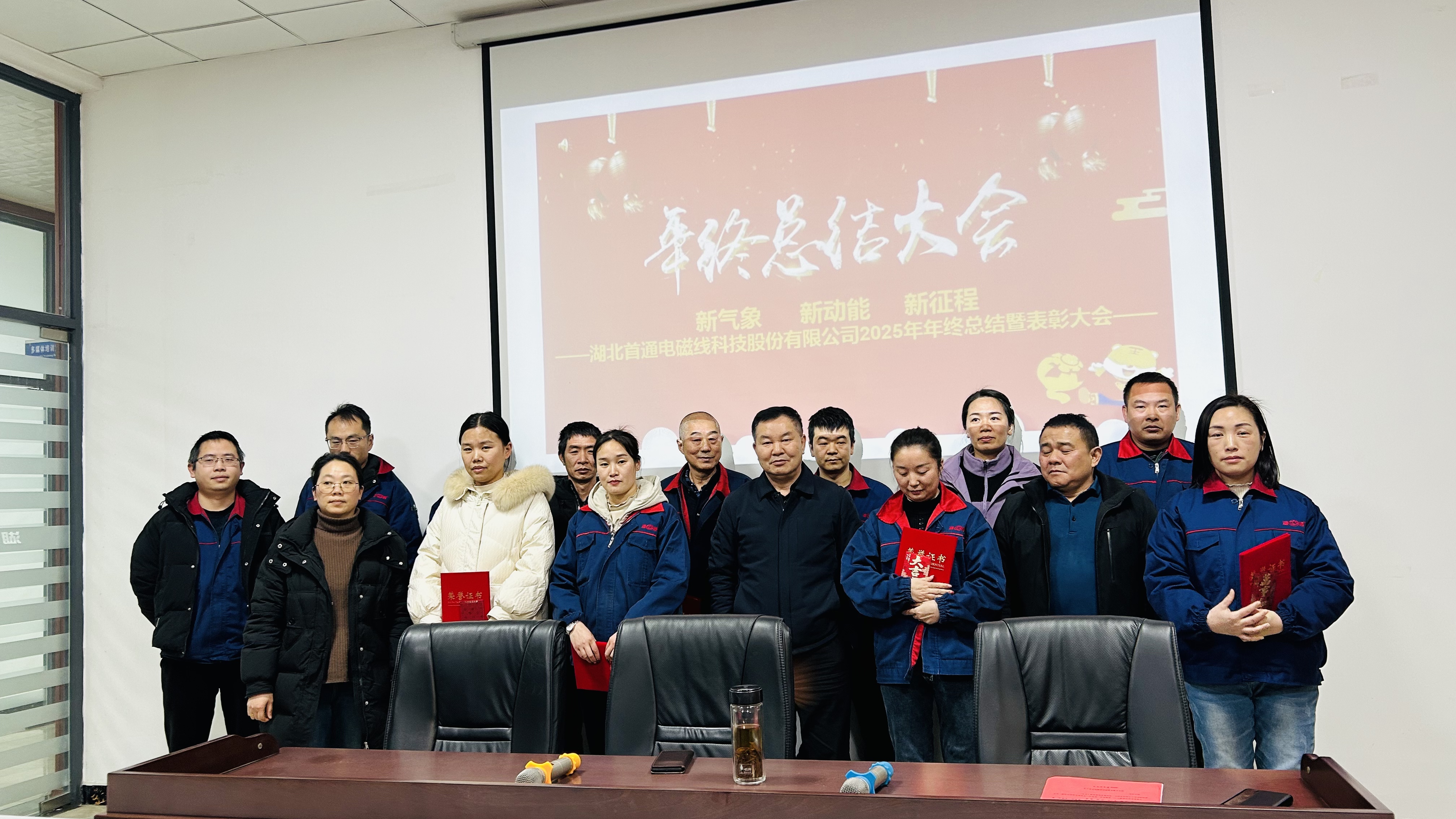 2026年2月7日,湖北首通电磁线科技股份有限公司2025年年终总结及表彰大会在公司一楼多媒体室隆重召开。公司贺董事长、黄总、潘总与全体员工欢聚一堂,回望耕耘成果,表彰先进典型,共话发展新篇。